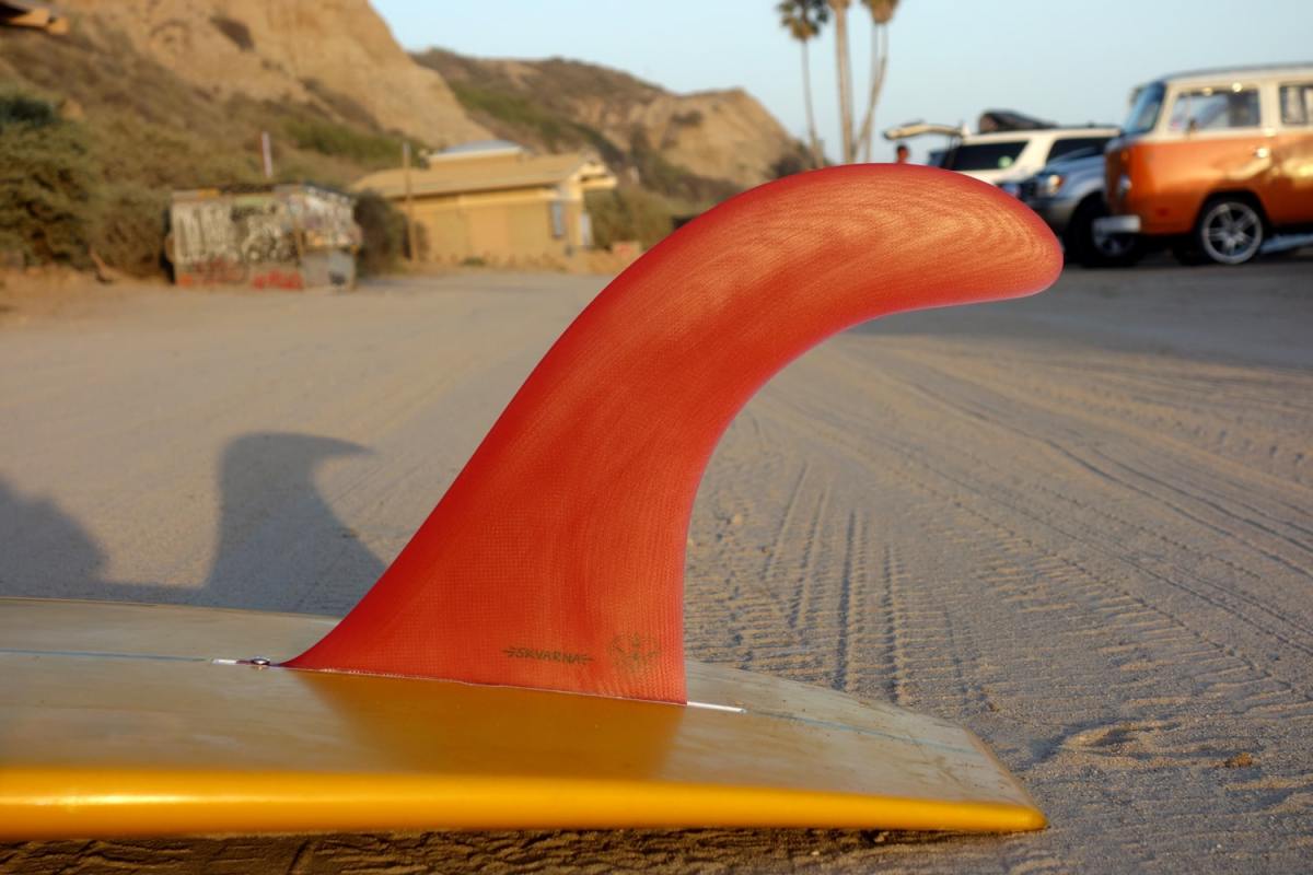Back to basics. Mounted in your noserider, this fin does its job the old fashion way. Straightforward and predictable with smooth contours and foiled to hold you solidly in the pocket for extended nose rides. The outline is not exaggerated, so it also cruises well and turns when you need it to reposition in the pocket or get around sections. Put it in the back of the box and let it work.