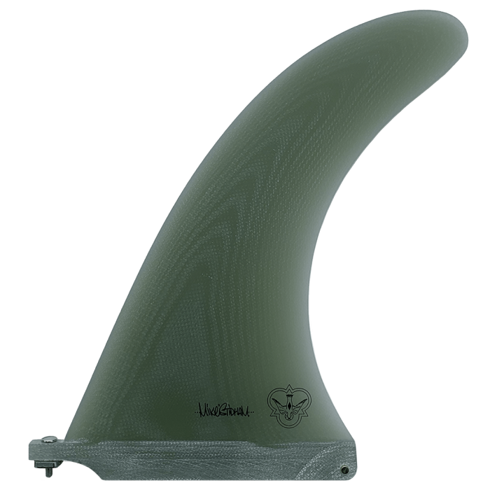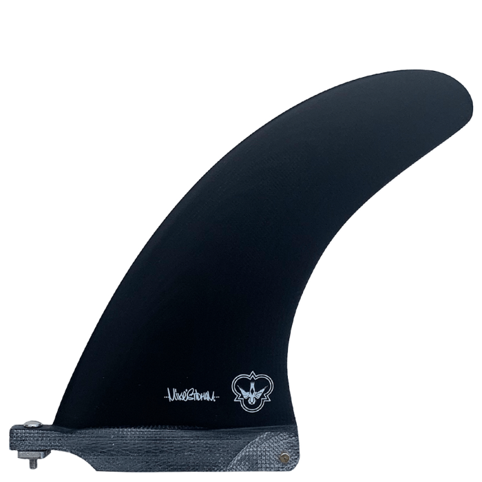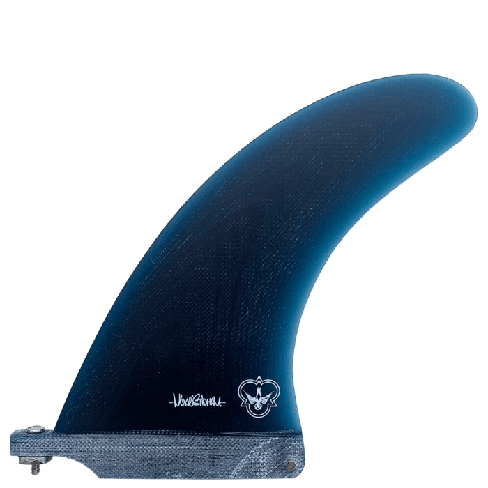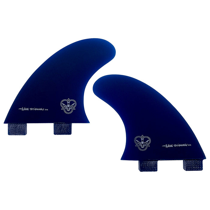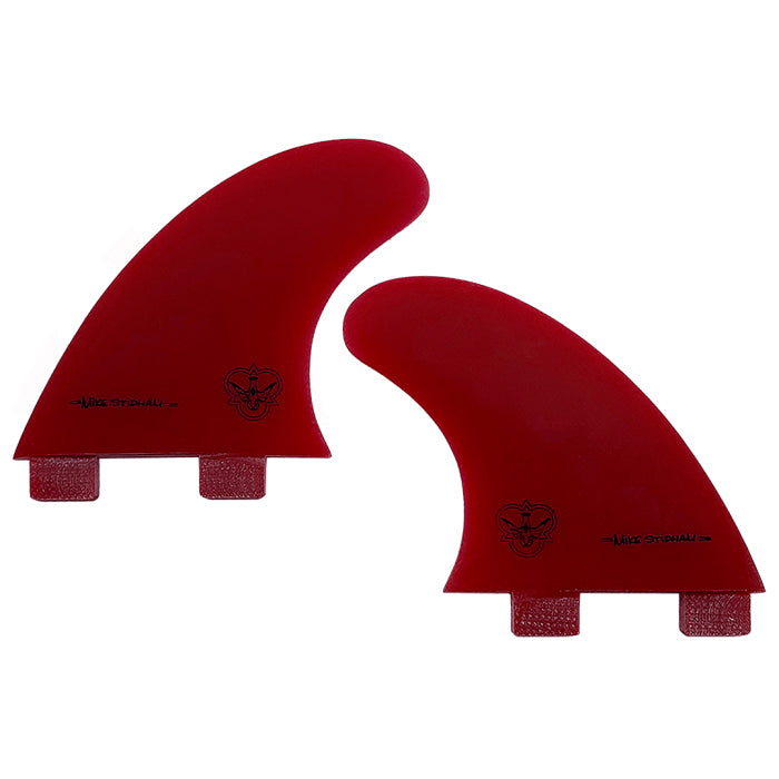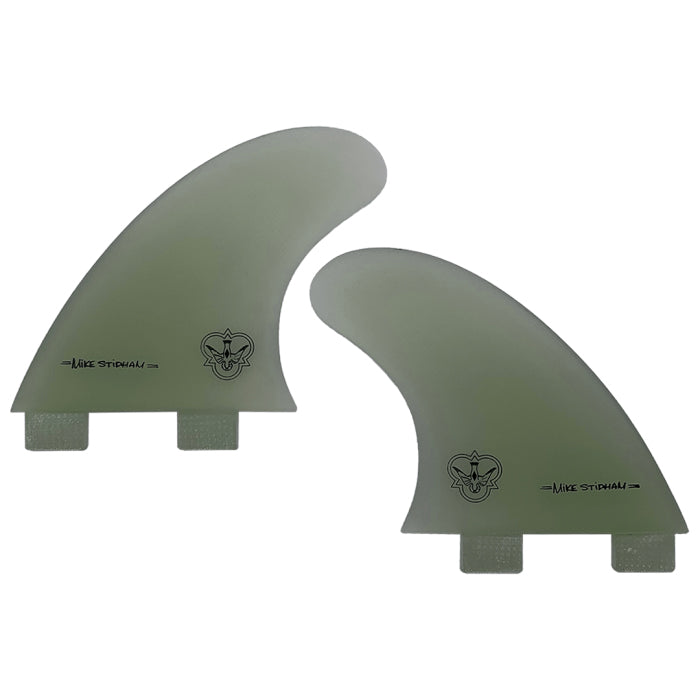 マイク・スティダムのシグネチャーフィンは、どんなログにもマッチするバランスの良いテンプレートを採用。立ち気味のアウトラインでピボットターンがしやすく、レイクもしっかり付けられているためアグレッシブなカービングも楽しめます。適度な硬さをもたせており、荷重した際にフィンがスライドしてしまうこともありません。フレックスフィンの踏みごたえの柔らかさが苦手な方にもオススメです。ノーズライドでのコントロール性をあげるためベース幅は広くデザインされていますが、テールに乗れば繊細なレスポンスが得られます。