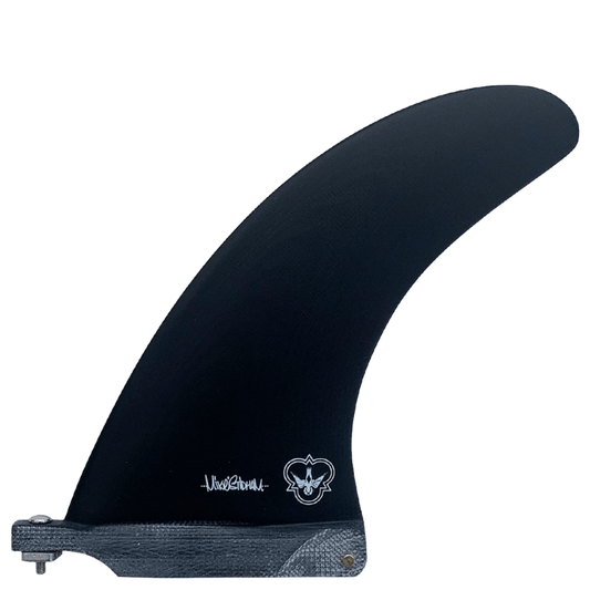 This template is the perfect balance for any log. It has a pretty straight up and down outline so it will pivot, but enough rake to be aggressive and wrap a turn. Never really have been a fan of flex fins, so this fin is nice and stiff so you can be heavy on your feet without any slipping or sliding. It also has a nice wide base for more controlled noserides, with a sensitive feel off the tail.