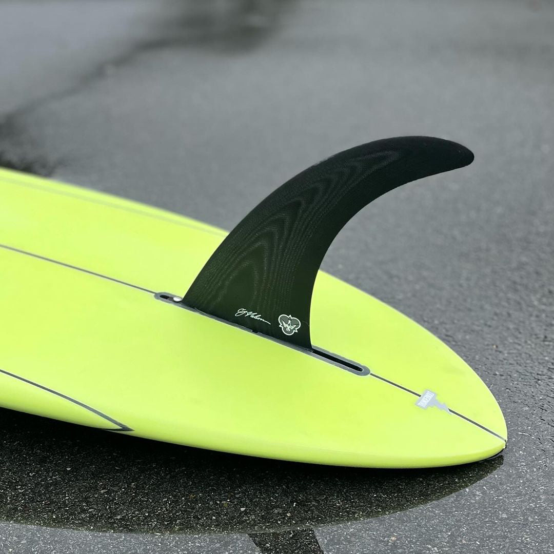無駄が無く、最適化された究極のラインと丁度良い絶妙なしなりは、伸びのあるターンを狙う上で必要最小限度の抵抗を与えます。シンプルに、ただ最高のターンをしたい、その為に必要な要素だけに照準を絞って設計されました。シングルフィンロングボードとの相性がよく、ただ気持ち良い最高のターンをサポートしてくれるFINになると思います。