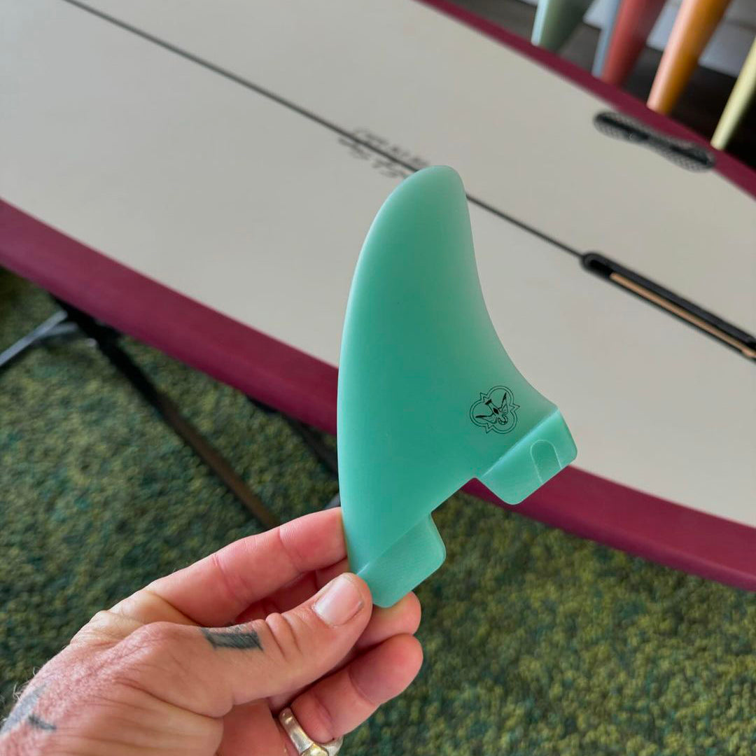 この小さくて美しいサイドバイトフィンは、長い時間をかけて開発されました。90年代のカリフォルニアでは既に多くのサーファーが2+1セットアップでロングボードに乗っていました。その解放的なロングボードカルチャーの中でCJは育ったのですが、シングルフィンでサーフィンを覚えたCJにとっては扱いづらい板でしかなく、トライフィンのロングボードに乗る事はストレスでした。その中で、CJ自身がオリジナルにアレンジして小さく加工したサイドフィンが新しい発見を生んだのです。控えめで目立たないテンプレートとスピーディーなフォイルを備えたシンプルなデザイン。全ての2+1セットアップにおいて万能に調和してくれるフィンになっています。
