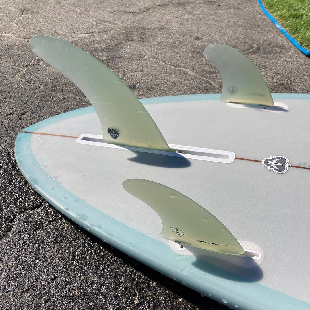 2+1のサイドフィンのデザインを考えた時に、自分は体重が重いのでしっかり踏み込めることを重視しました。そこを基本にアウトラインはフルでホールドが良いもの、インサイドにもフォイルを付けてダウンザラインのスピードを上げ、なおかつ、引きずる感覚や弾みを無くしました。このフィンは、最高のコントロール性能とターンの抜けがスムースなデザインです。
