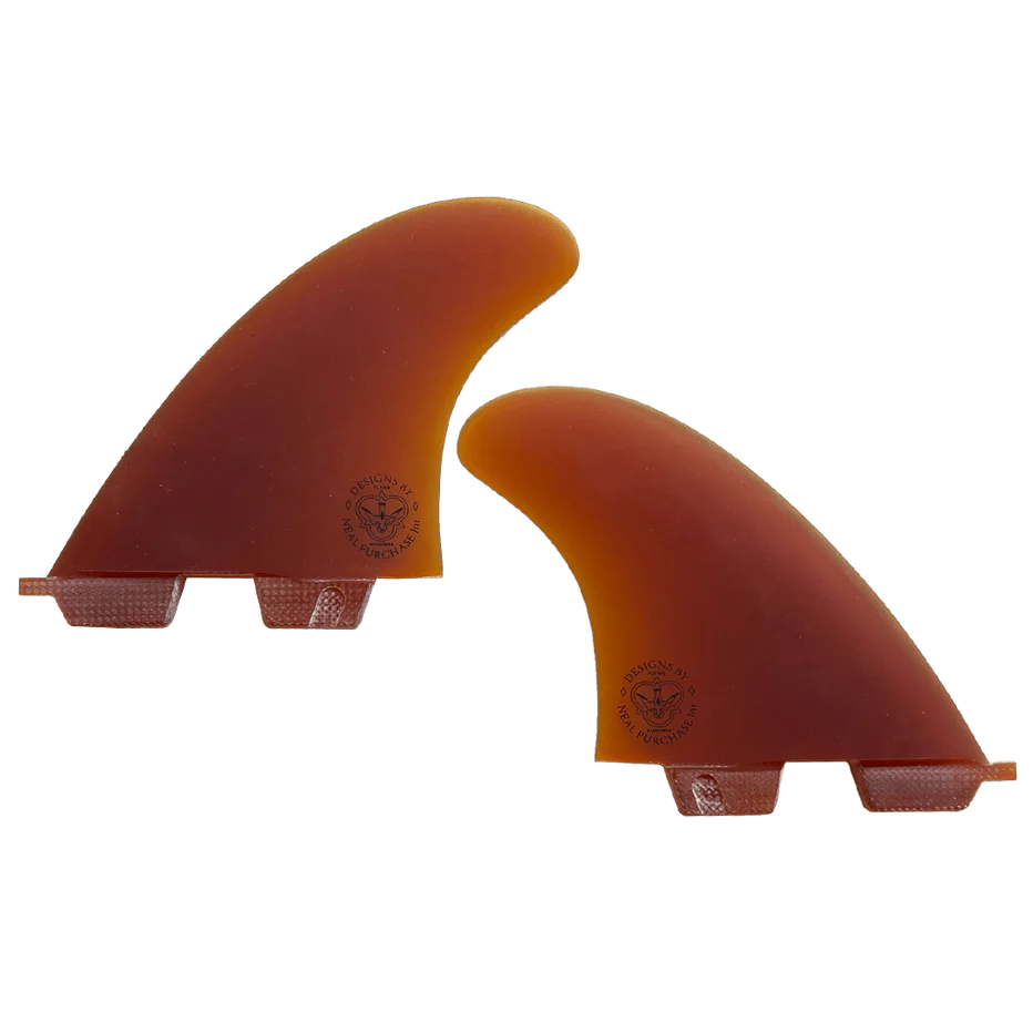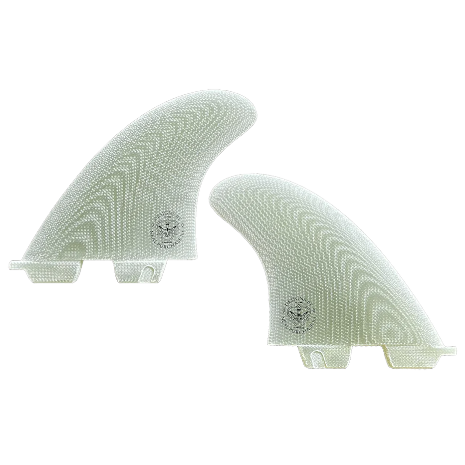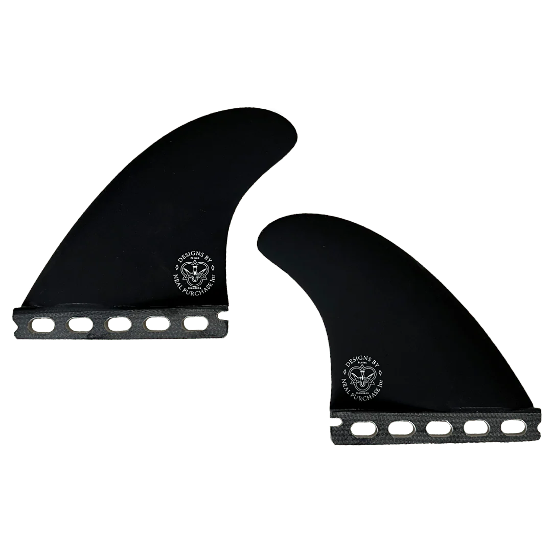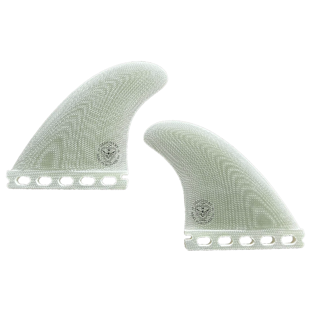 These 4.25" side fins have the base and overall outline to provide solid drive and hold in proper waves. They are designed to match performance center fins in the 6.0” to 7.5” and go perfectly with my 6.75” 2+1 Center Fin. They have 80/20 foil for speed and smooth transitions in hard turns.