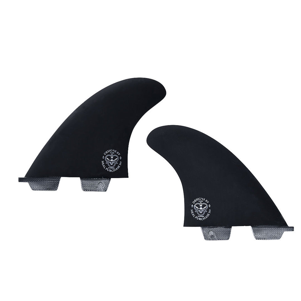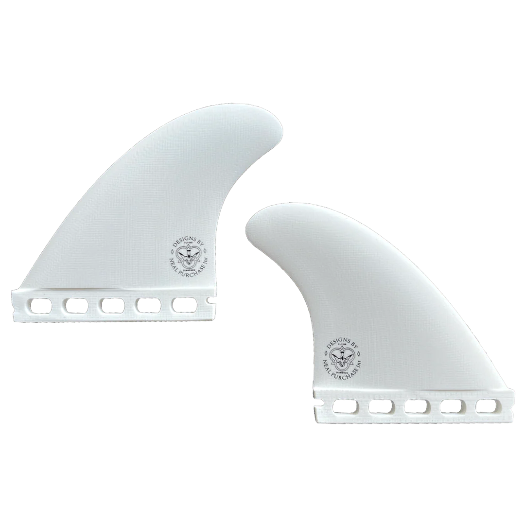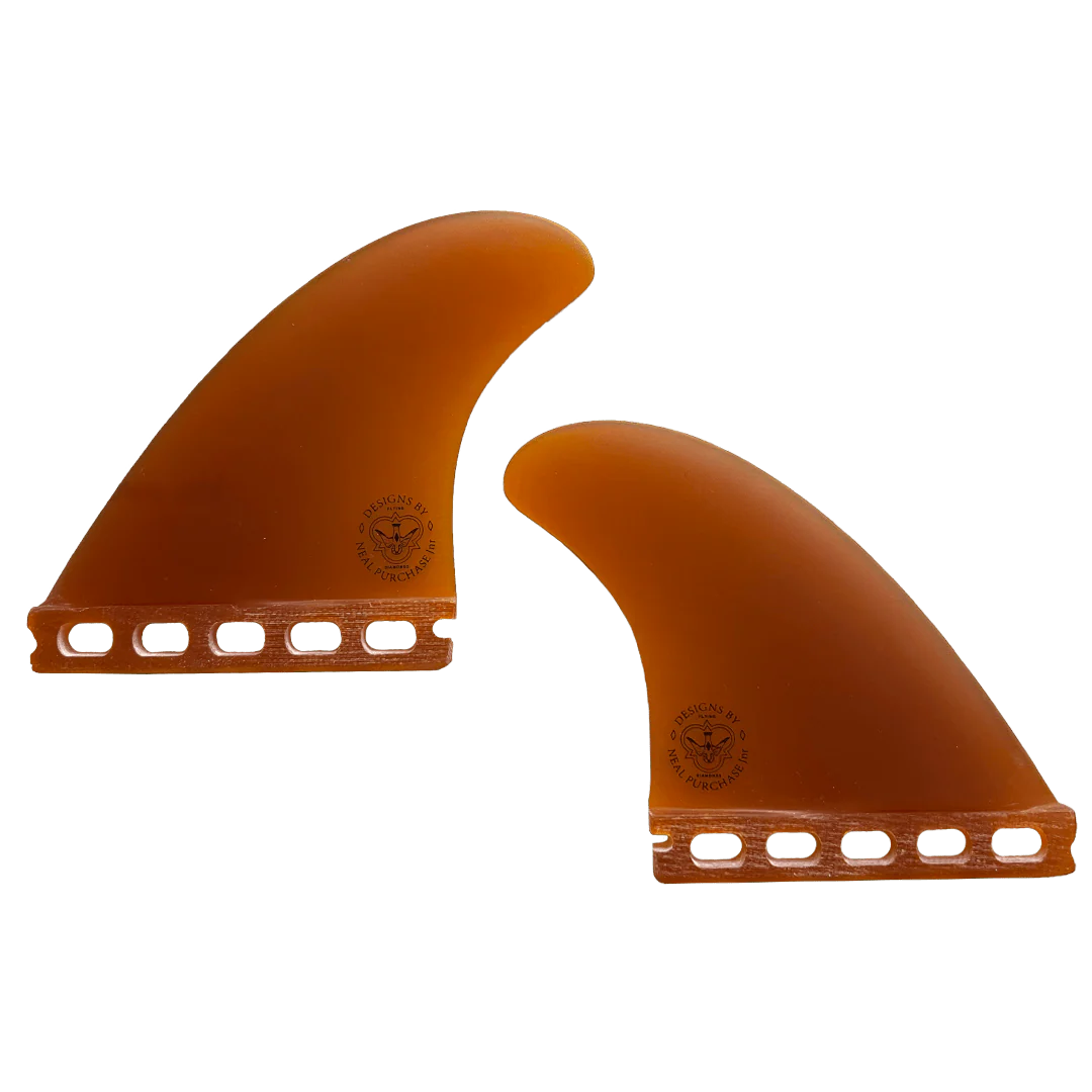 These 4.25" side fins have the base and overall outline to provide solid drive and hold in proper waves. They are designed to match performance center fins in the 6.0” to 7.5” and go perfectly with my 6.75” 2+1 Center Fin. They have 80/20 foil for speed and smooth transitions in hard turns.